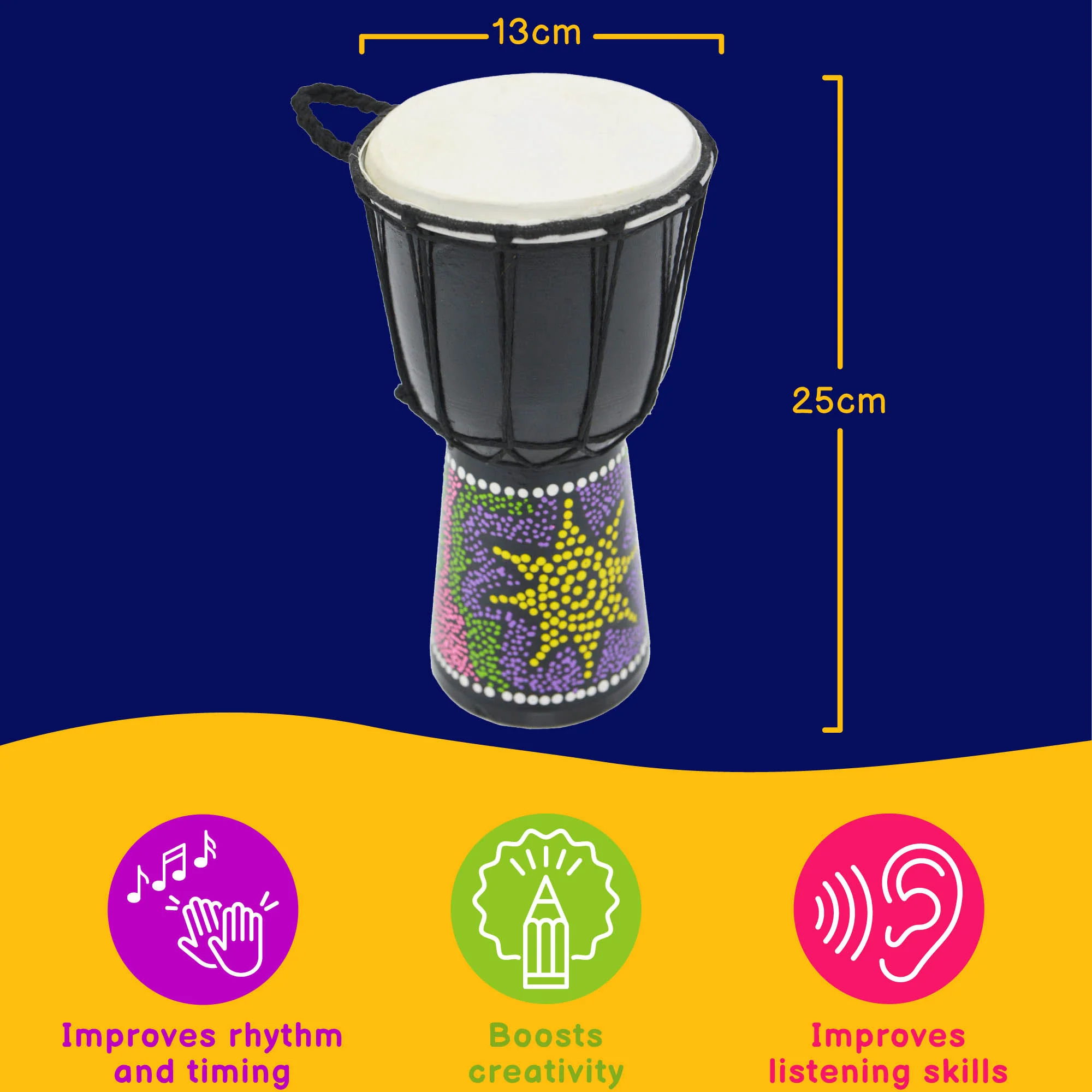 - 5" djembe head - 25cm tall