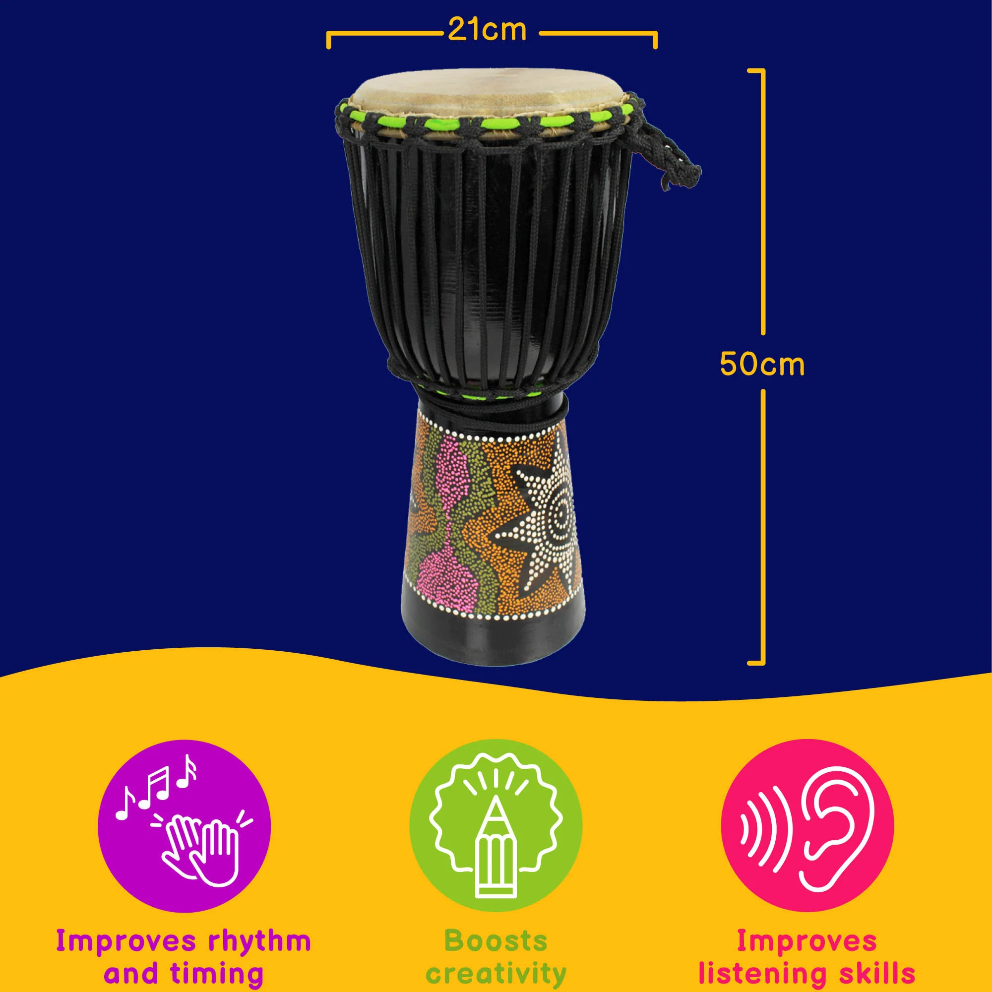Features/Specification:- 8" djembe head - 50cm tall