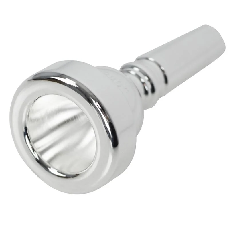 Silver-plated tenor horn mouthpiece designed to produce a powerful tone.