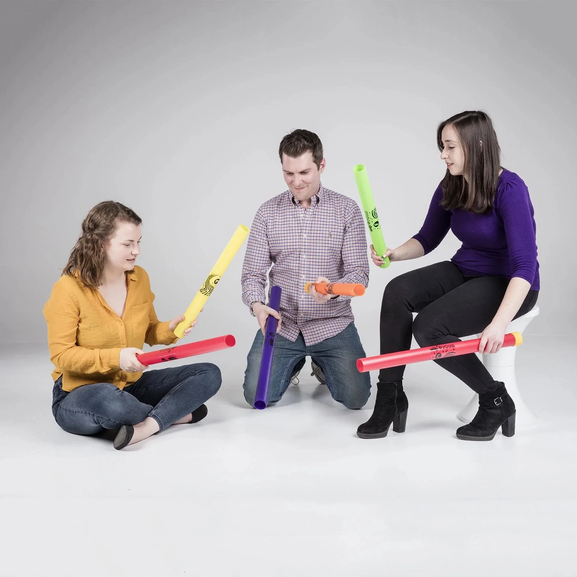 These brightly coloured tuned percussion tubes are played by striking them on a hard flat surface. Hitting the floor with the whole length gives the loudest sound. Brilliant fun and easy to play - you can play tunes on them and make up musical games. Great in workshops, play schemes and schools.